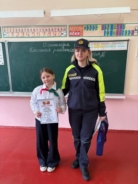 Диплом ей вручила инспектор группы агитации и пропаганды МО УГАИ Гомельского облисполкома К.Д. Шахленкова.